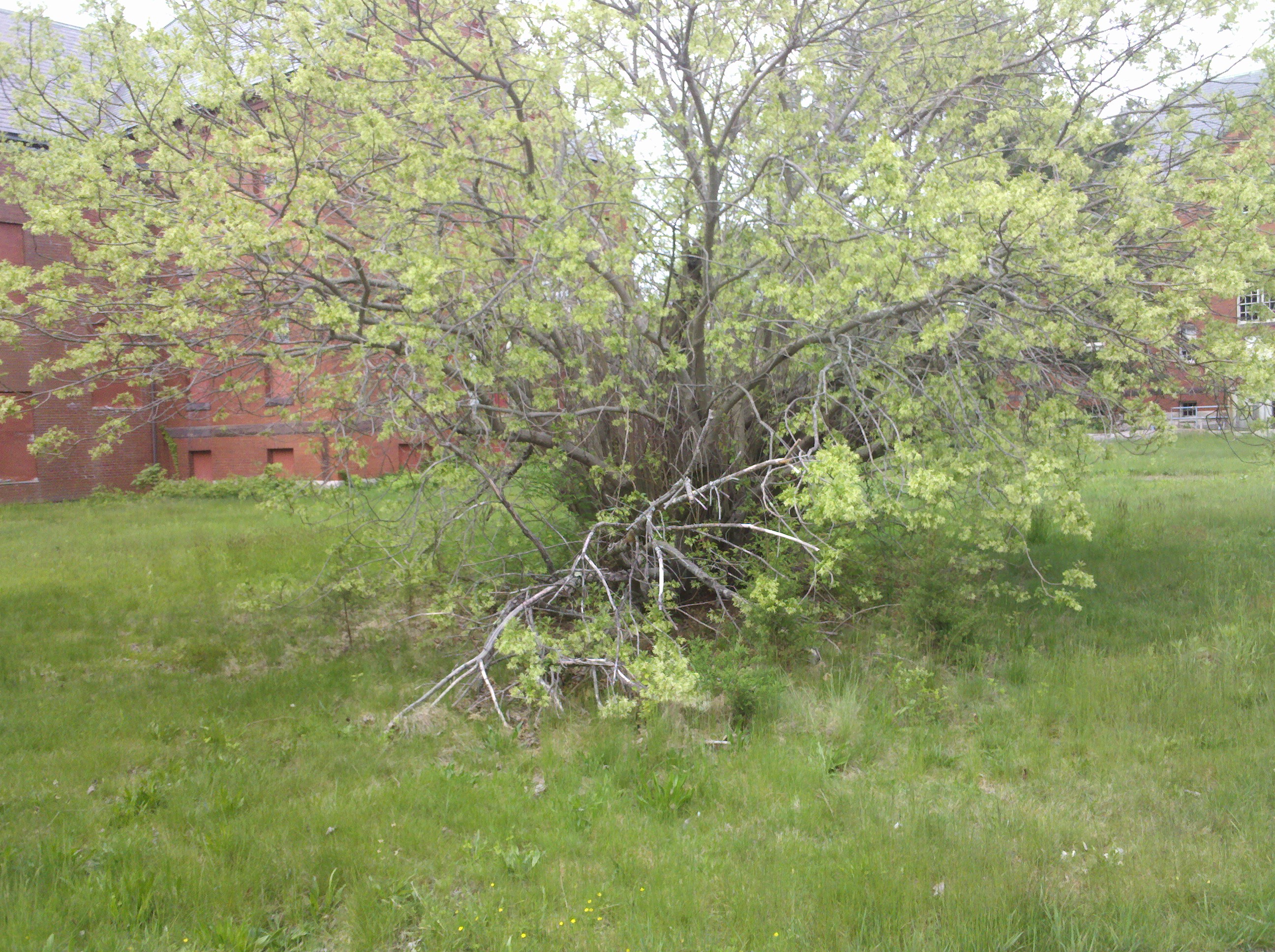 The fringe tree at the Medfield State Hospital will bloom this week.  I saw it Sunday while jogging, and there were blooms open at the very bottom.  The whole tree will be covered with fringe like flowers this week. It looks like nothing, a large bush, until it blooms, then it is absolutely spectacular for a few days.