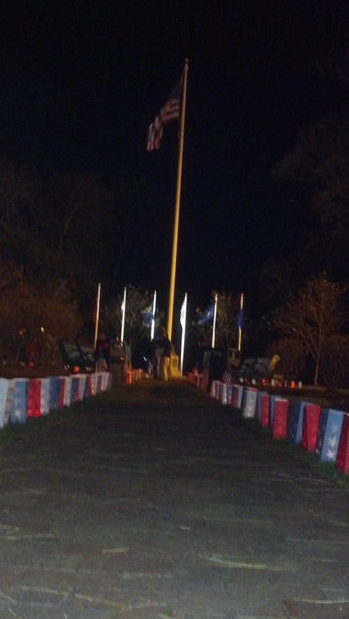 Baxter Park's walkways were lined with luminaries in honor of veterans this evening.  The event was organized by Michelle Doucette! for the Women's  Auxiliary of the Legion.