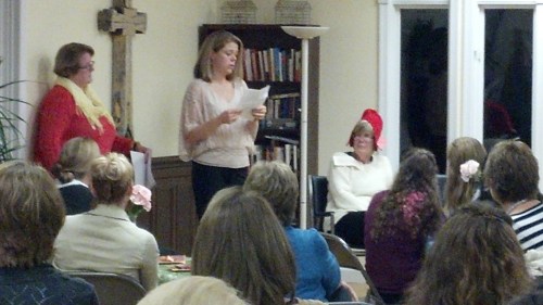 New president Martha Sherman and a series of other volunteers took turns guiding Beth through her history with the MFC as she opened one trash bag after another, each containing a different hat representing another function that she had served for the organization. As Beth choose another bag to open and pulled off one had after another and put it on, another member of the assembled group of MFC volunteers would walk forward to describe Beth in one more MFC role.