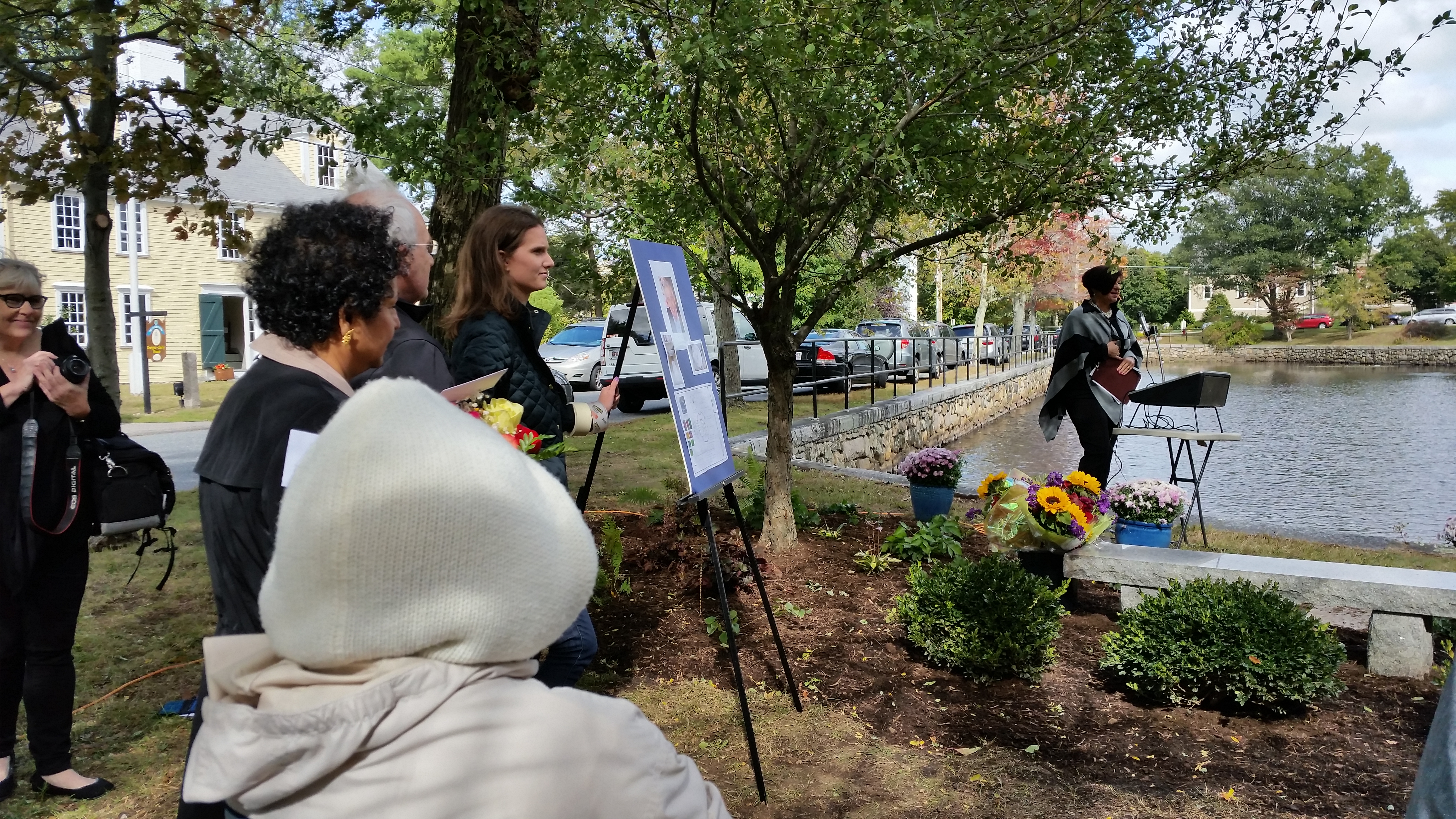 Medfield.TV dedicated its Edward P. Doherty Memorial Garden at the end of Baker’s Pond this afternoon. In this photo is the granite bench in Ed’s honor, the garden, and the Medfield.TV brain trust. A sundial is still to come.