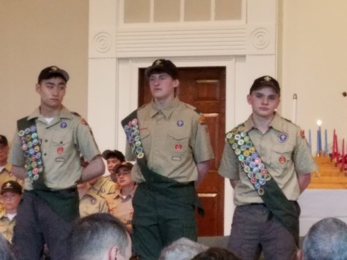 Daniel Kelly, Alex Rollins, and Lucas Zheng received their eagle scout awards this afternoon from Troop 89.