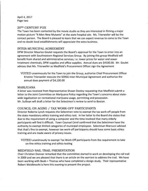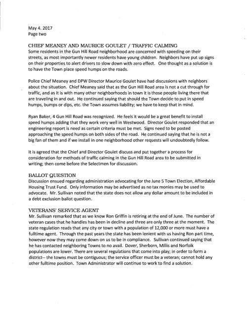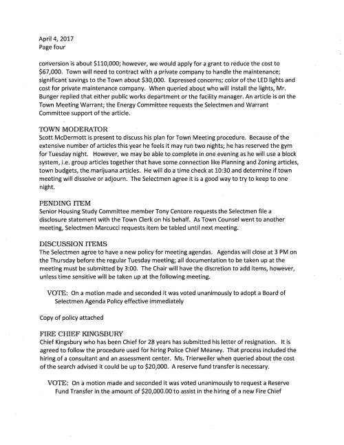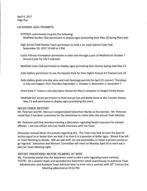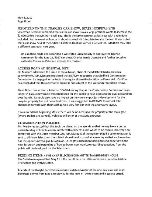 Evelyn just got us the minutes for selectmen meetings on April 4, May 4, and May 23, which appear below.