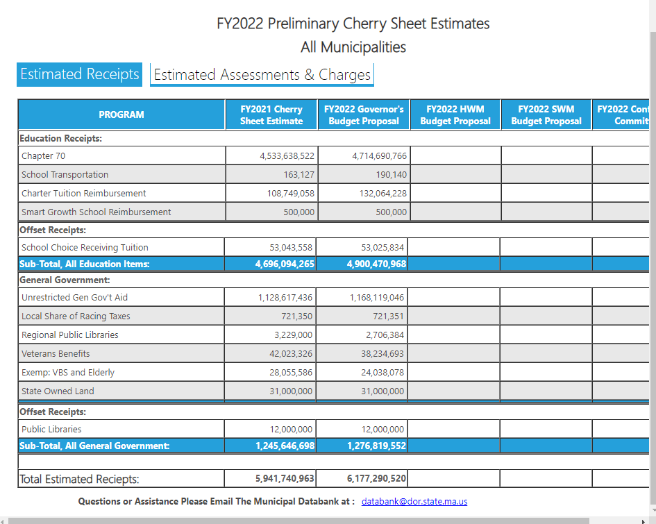 The town’s state revenue numbers are called “cherry sheet” numbers because historically these budget numbers were issued on red paper – back when things were still done on paper.