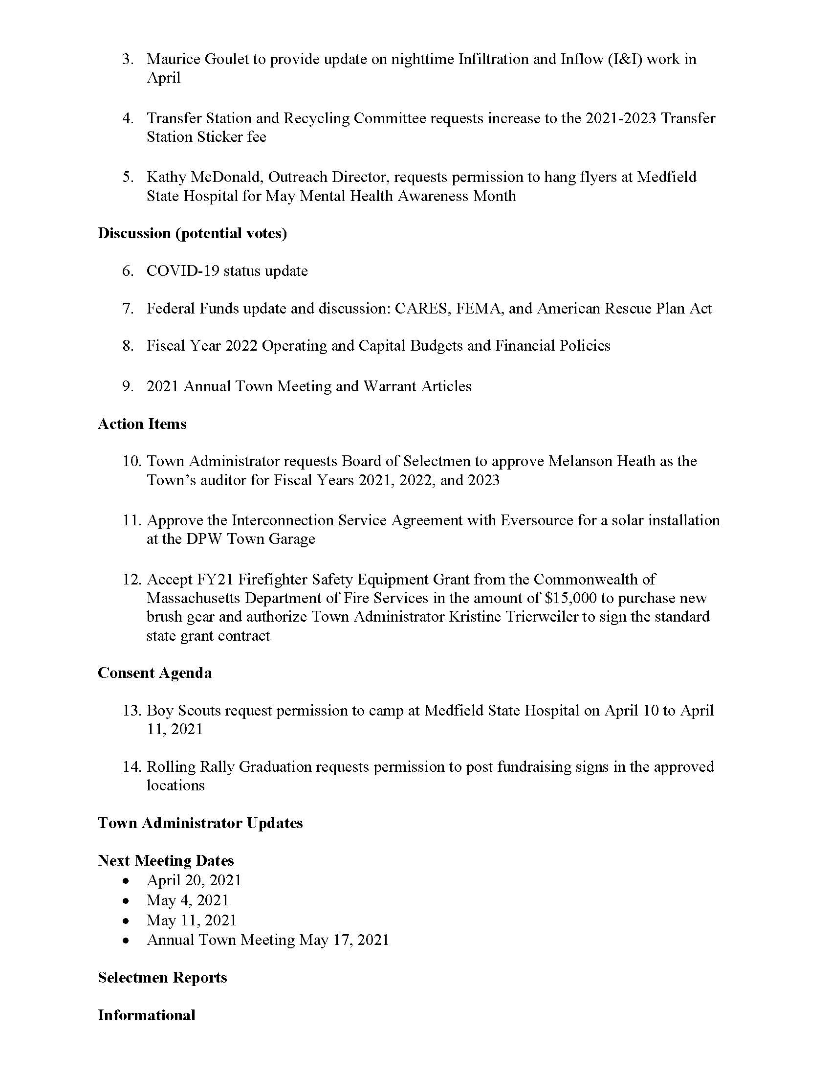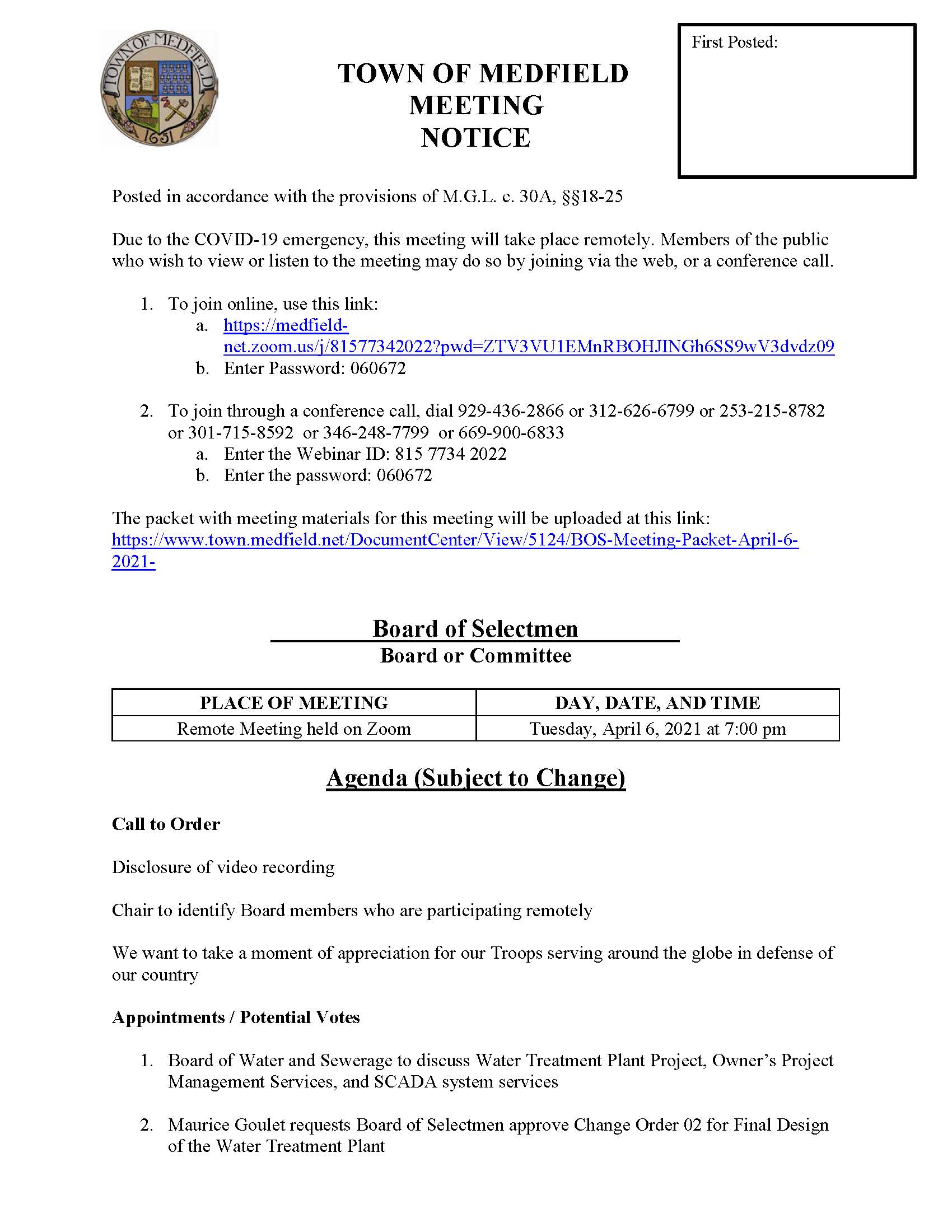 Meeting materials available here – http://www.town.medfield.net/663/Agenda-Packets