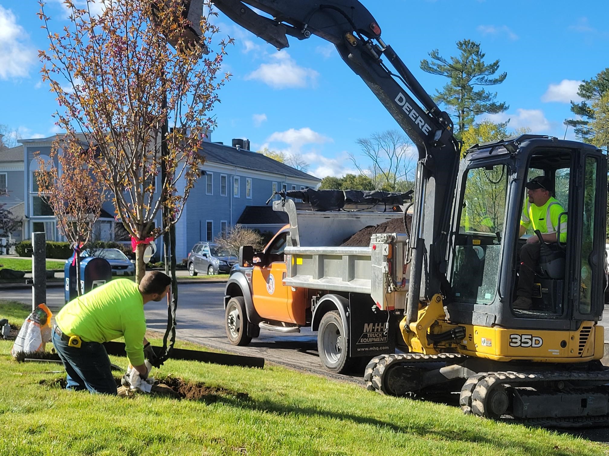 DPW plants trees at Post Office