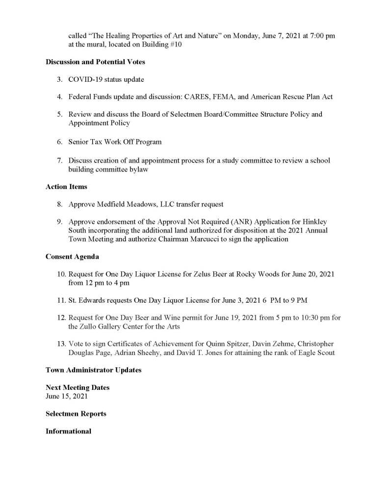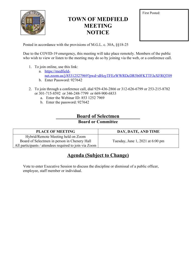 Comments Off on Select Board at 7PM on 6/1/21 – 6PM Executive Session first