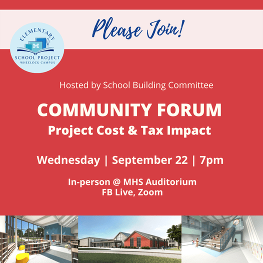 If you’d like to learn more about the proposed school’s costs or the tax implications please join the community conversation on WEDNESDAY, September 22nd at 7PM in the high school auditorium or tune in remotely via Facebook Live or Zoom.