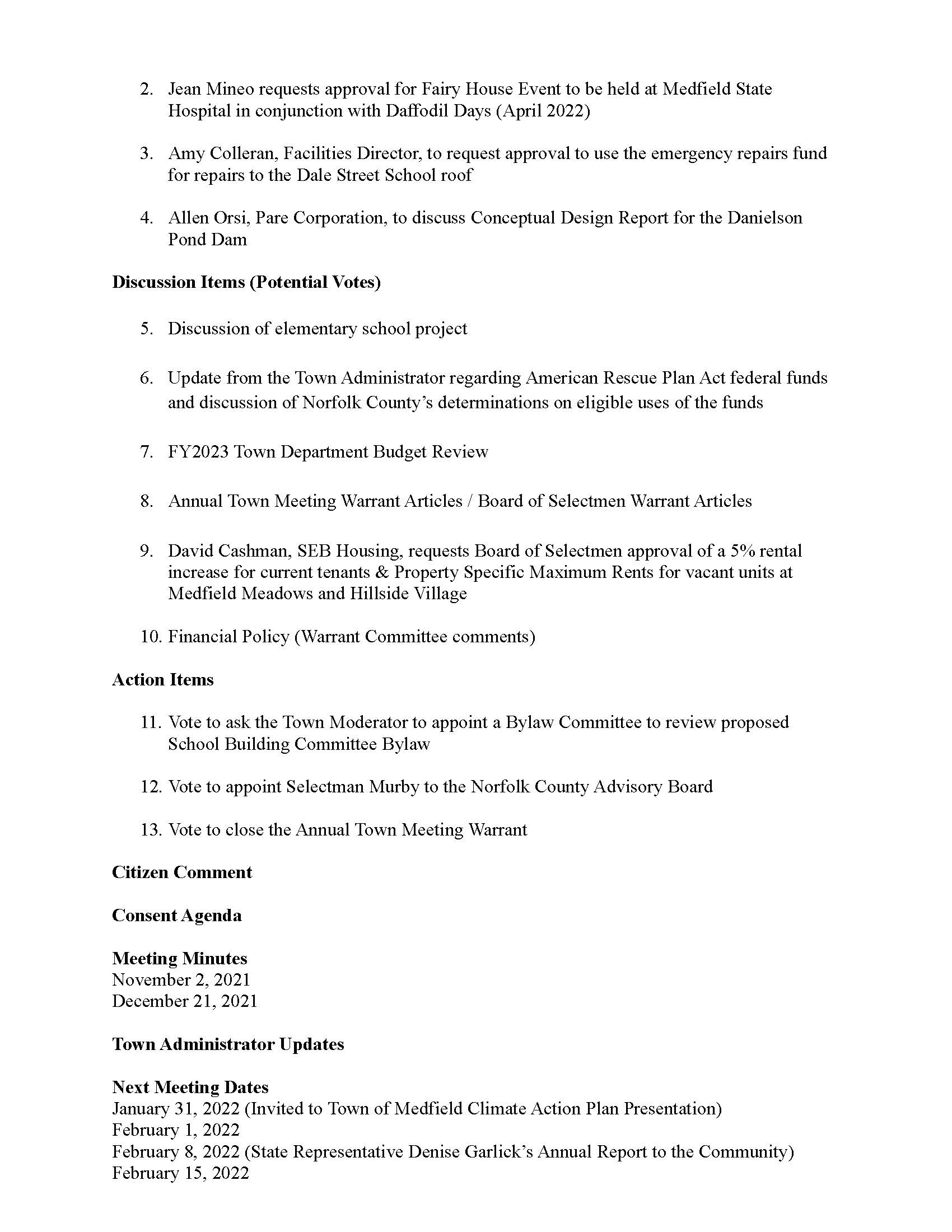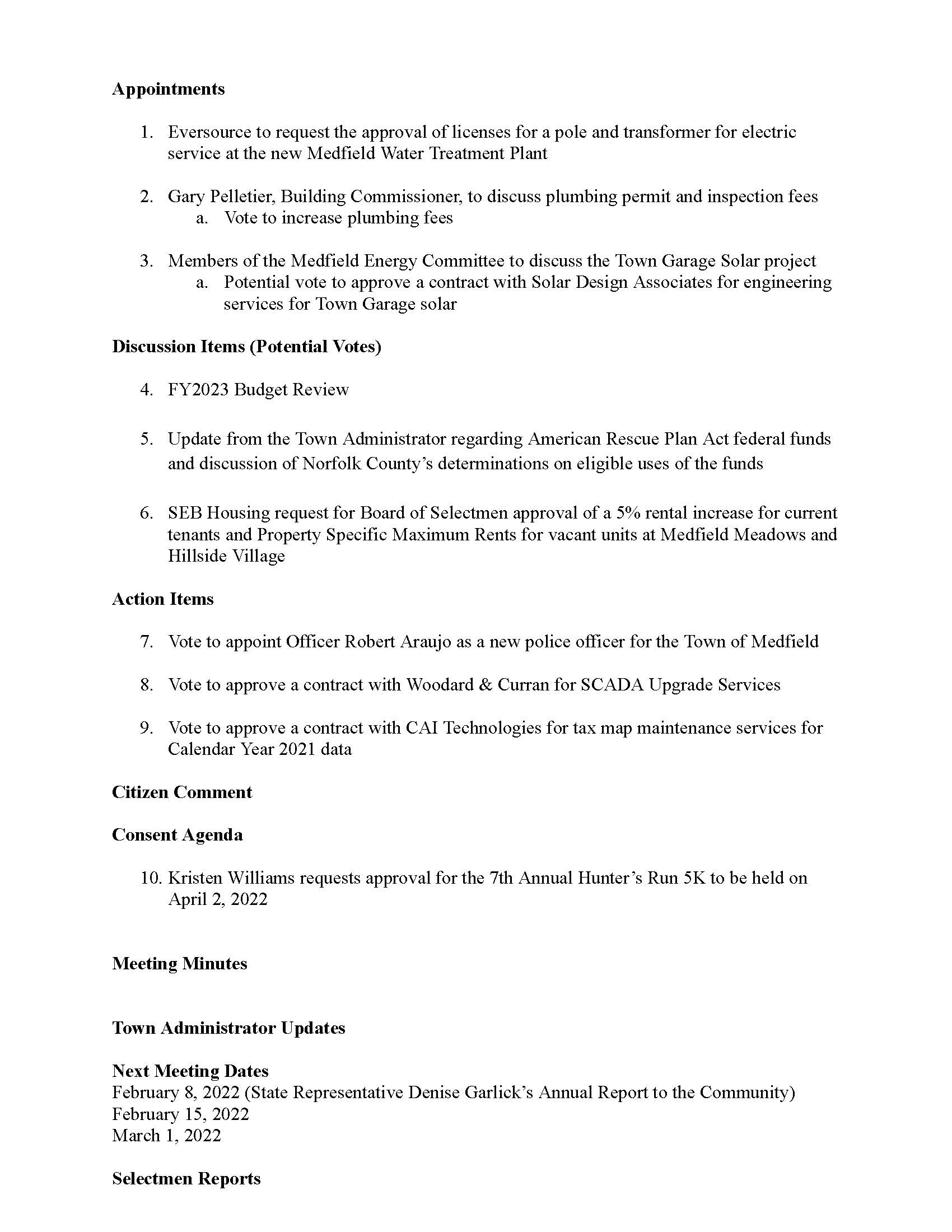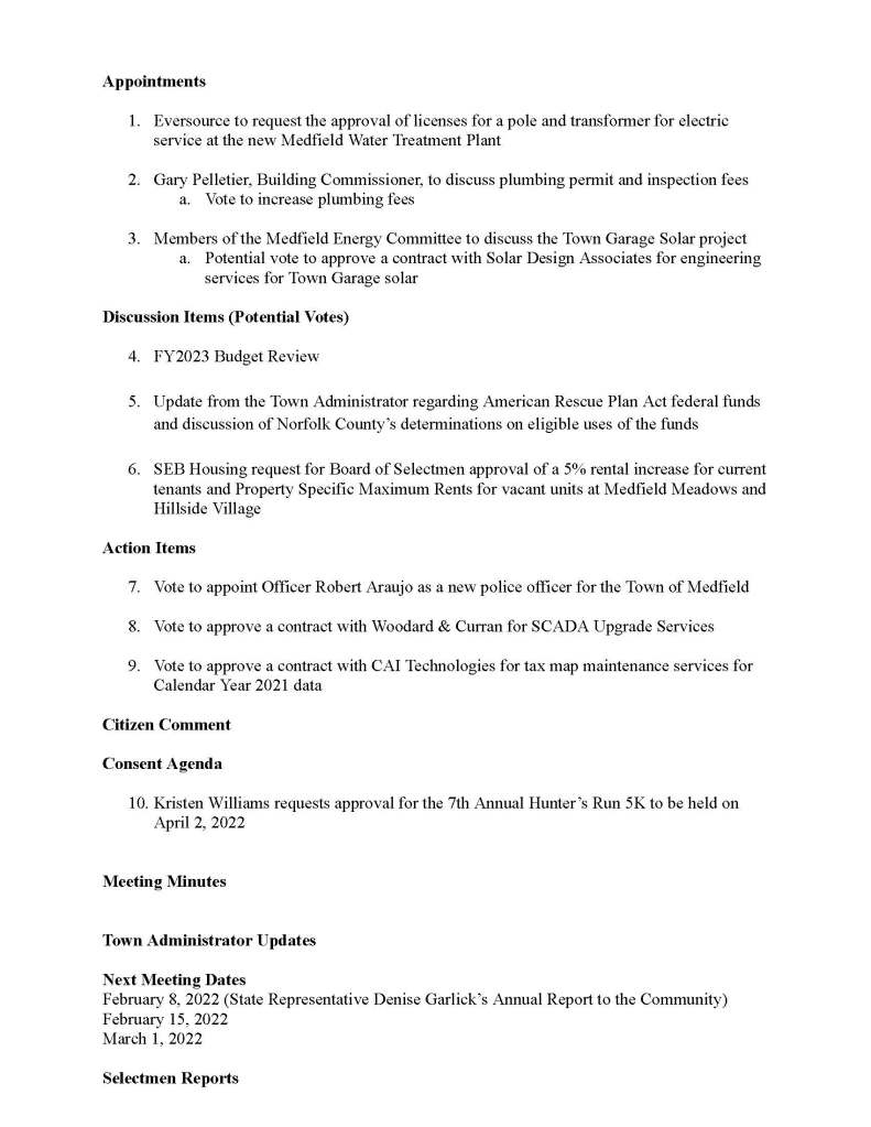 | 7 | FY2023 Operating Budget | Board of Selectmen |