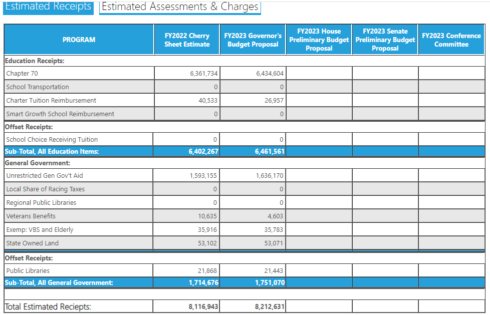 Posted in Budgets, Financial, Massachusetts Municipal Association, Select Board matters, State