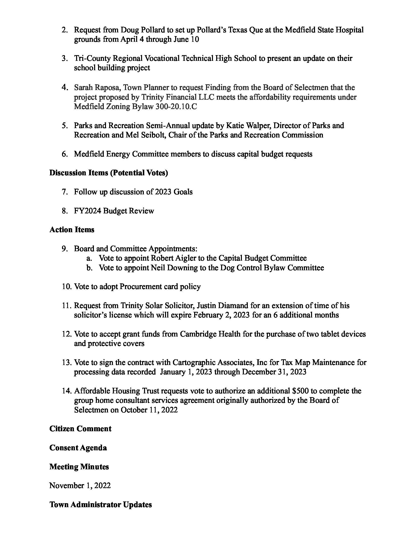 The packet with meeting materials for this meeting is available at this link: https://www.town.medfield.net/DocumentCenter/View/6871/BOS-Meeting-Packet_02072023