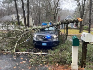 Personally, I was blocked from using RTE 109 or 115 to get back from Millis late morning. Eventually got through on 109 and saw a 2-3′ diameter pine on the roadway.