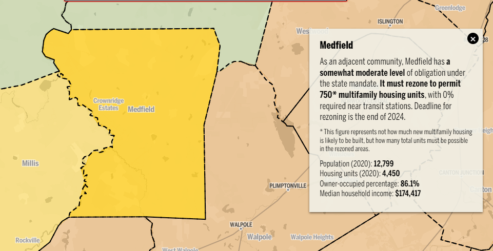 The MBTA Communities Act mandated requirements for us, per a Boston Globe map –