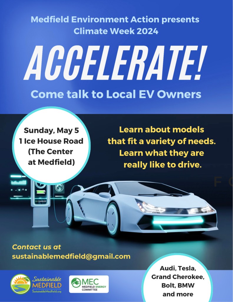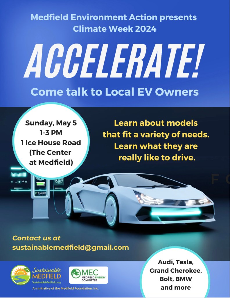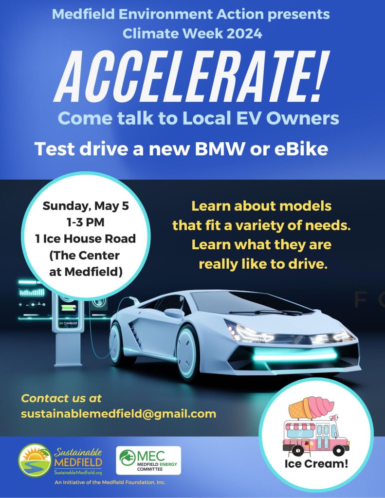 1 – 3 pm, Sunday, The Center at Medfield parking lot – One Ice House Rd. Medfield Energy Committee, Medfield Park and Recreation, and Sustainable Medfield