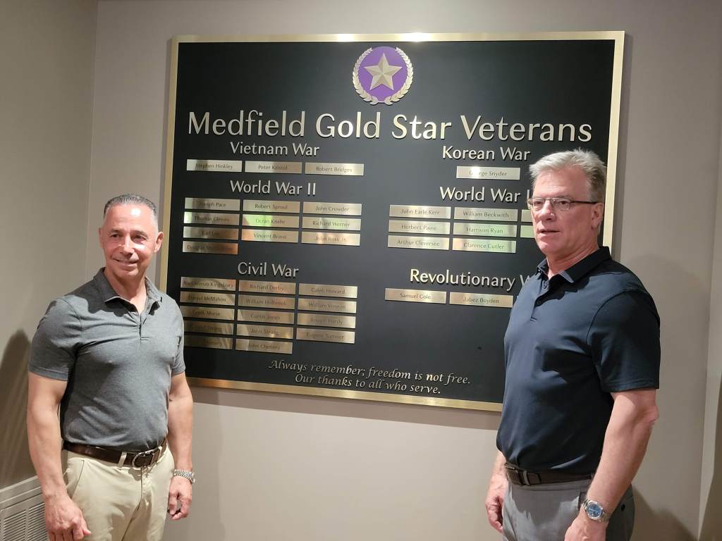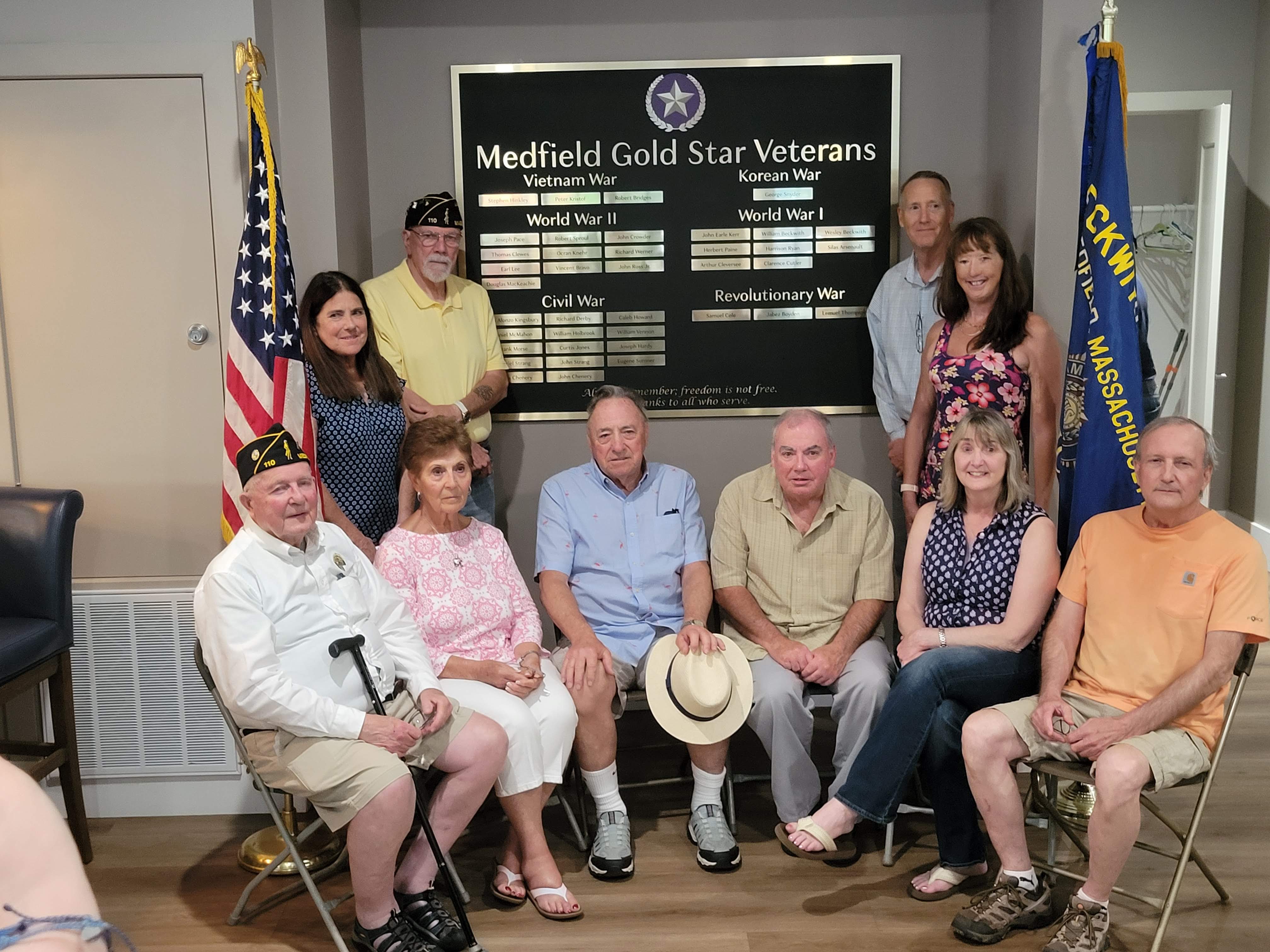Medfield’s Gold Star Veterans were honored on a plaque unveiled this past week at the Legion, in the Aura building. The families of some of the Medfield gold star veterans are shown below.
