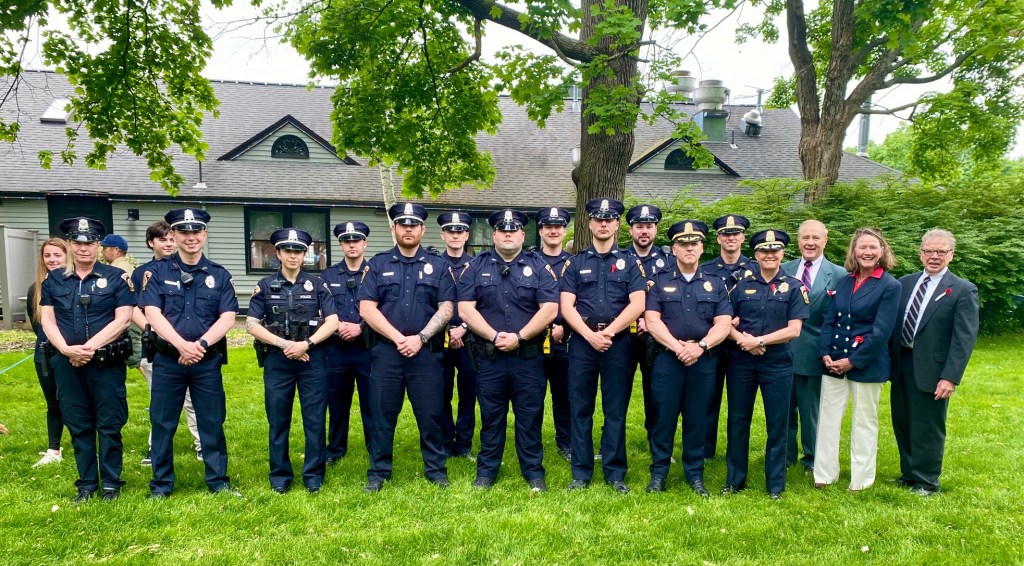 Colleen shared with me last night this photo she orchestrated yesterday of the Medfield Police Department and the Select Board in Baxter Park after the ceremony –