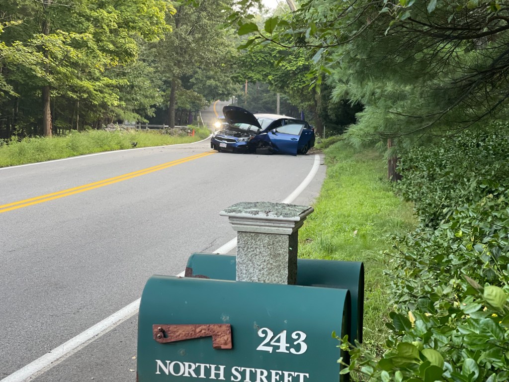North Street between School Street and Farm Street is now closed. Stolen car hit telephone pole, which will have to be replaced. Occupant(s) missing. Considered a crime scene. A Canine unit searched the area. Happened just before 5 am.