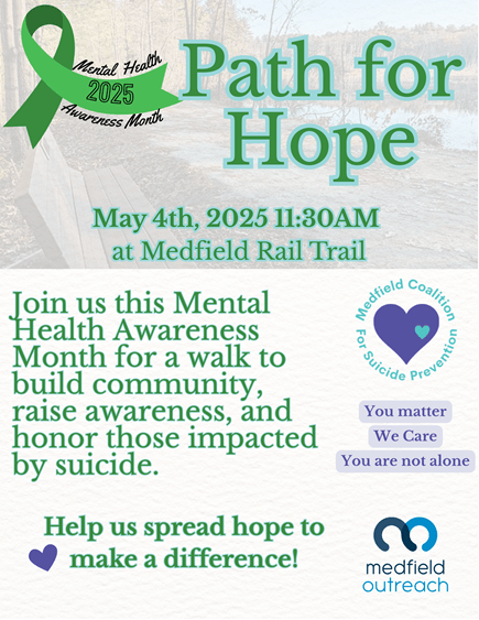 Posted in Events, health, MCSP - Medfield Coalition for Suicide Prevention, Medfield Foundation, Medfield Outreach, Medfield Rail Trail