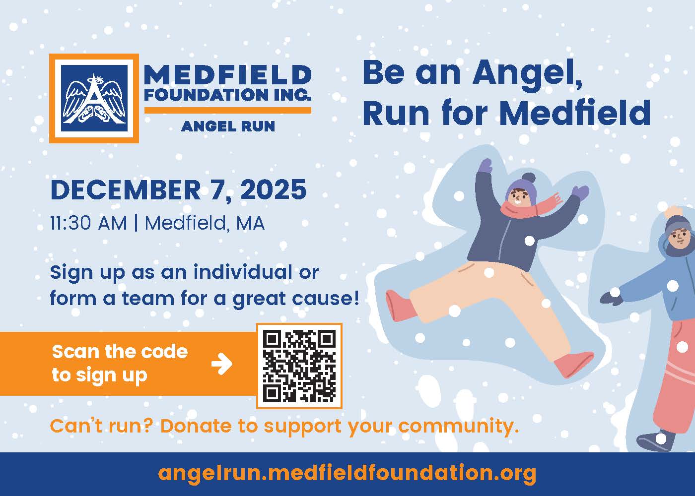 Join us! Sunday, December 7th at 11:30 AM Register before November 2nd to get this years commemorative shirt!: angelrun.medfieldfoundation.org/about