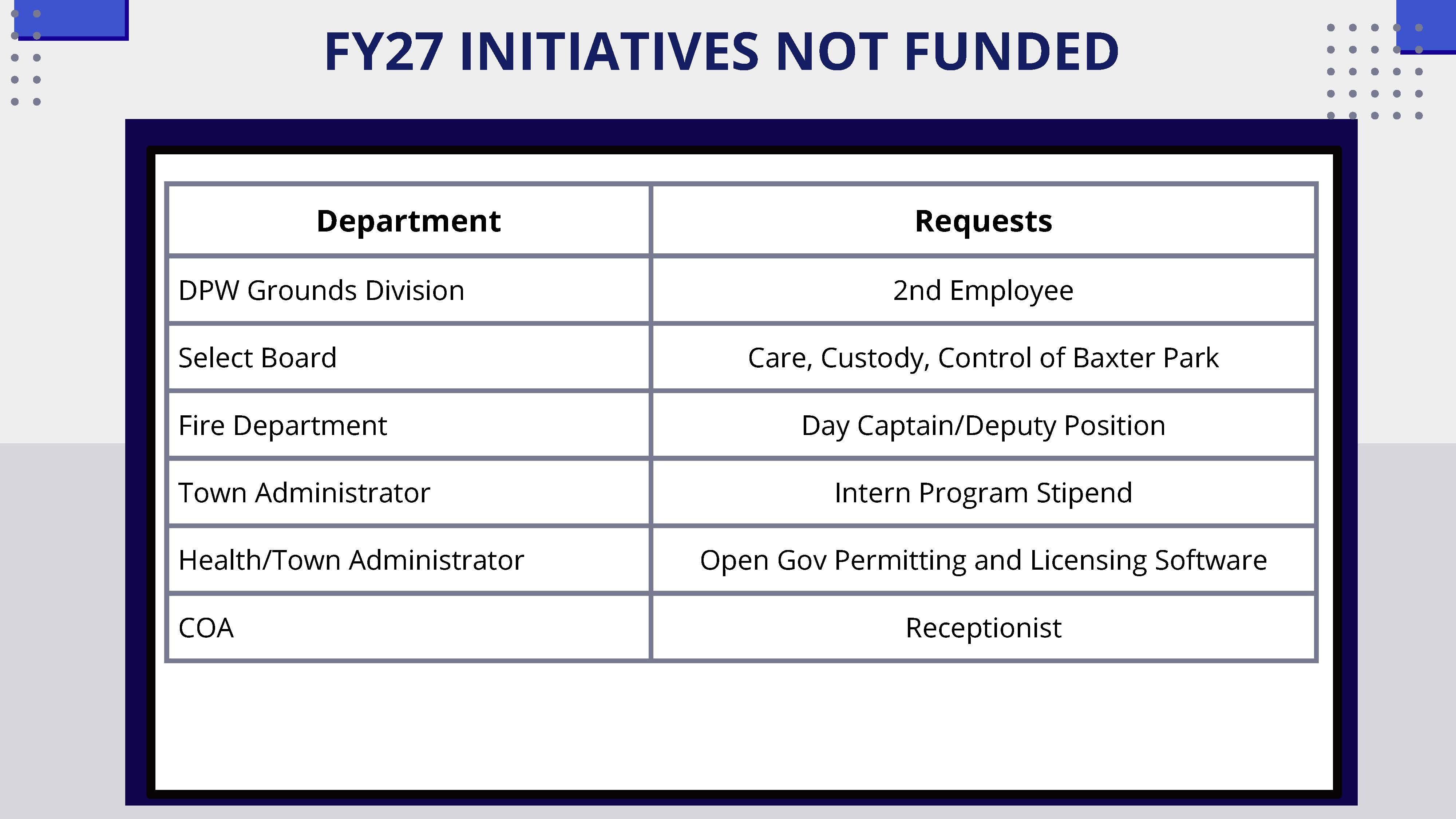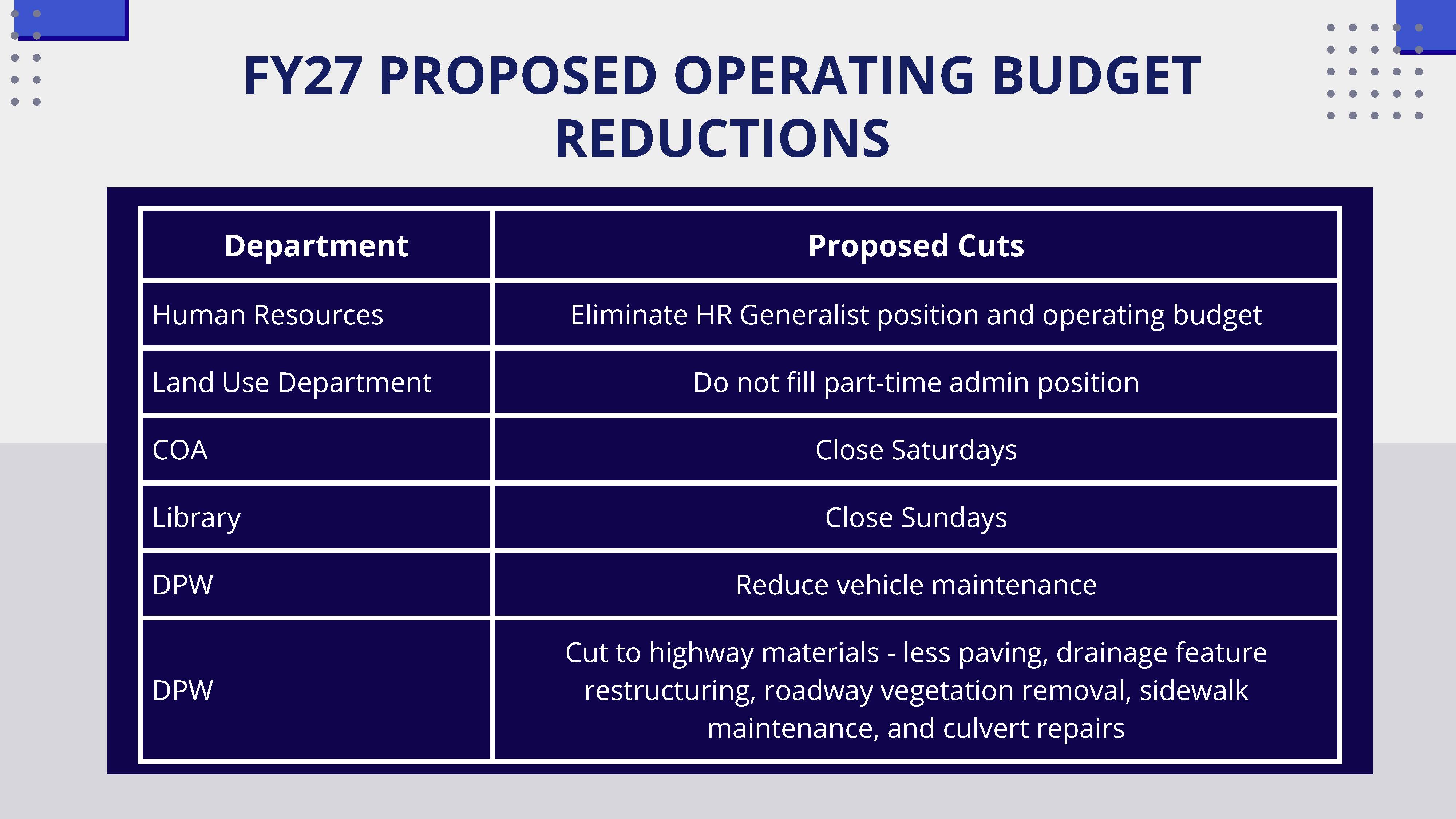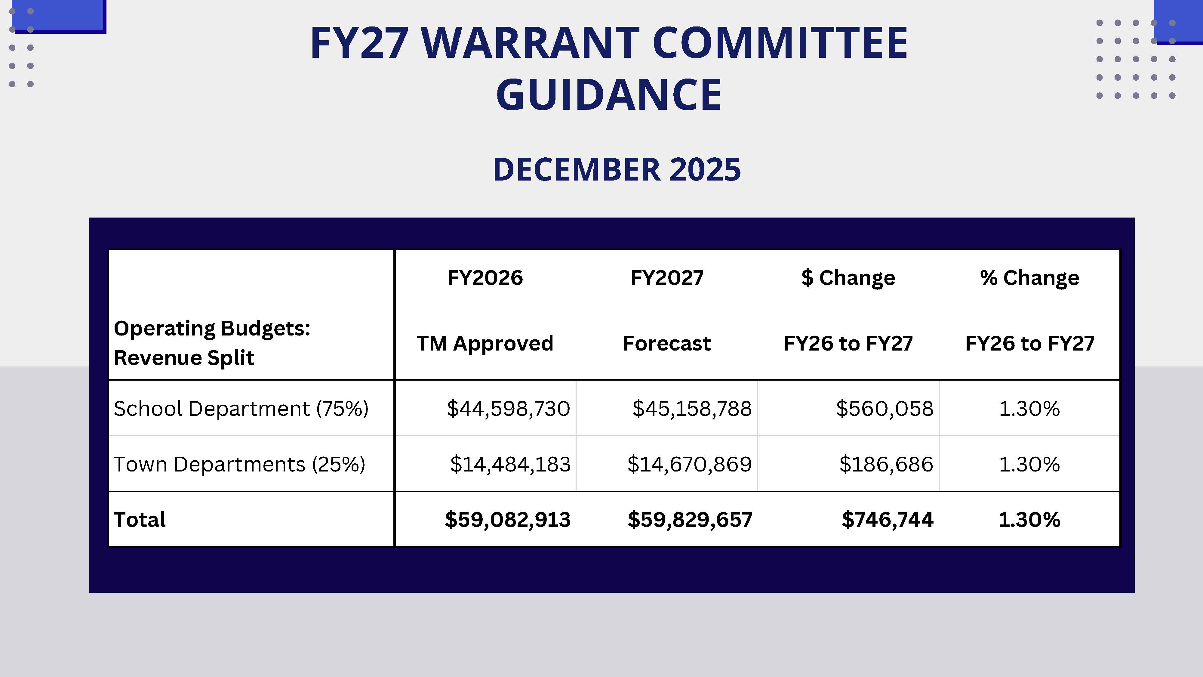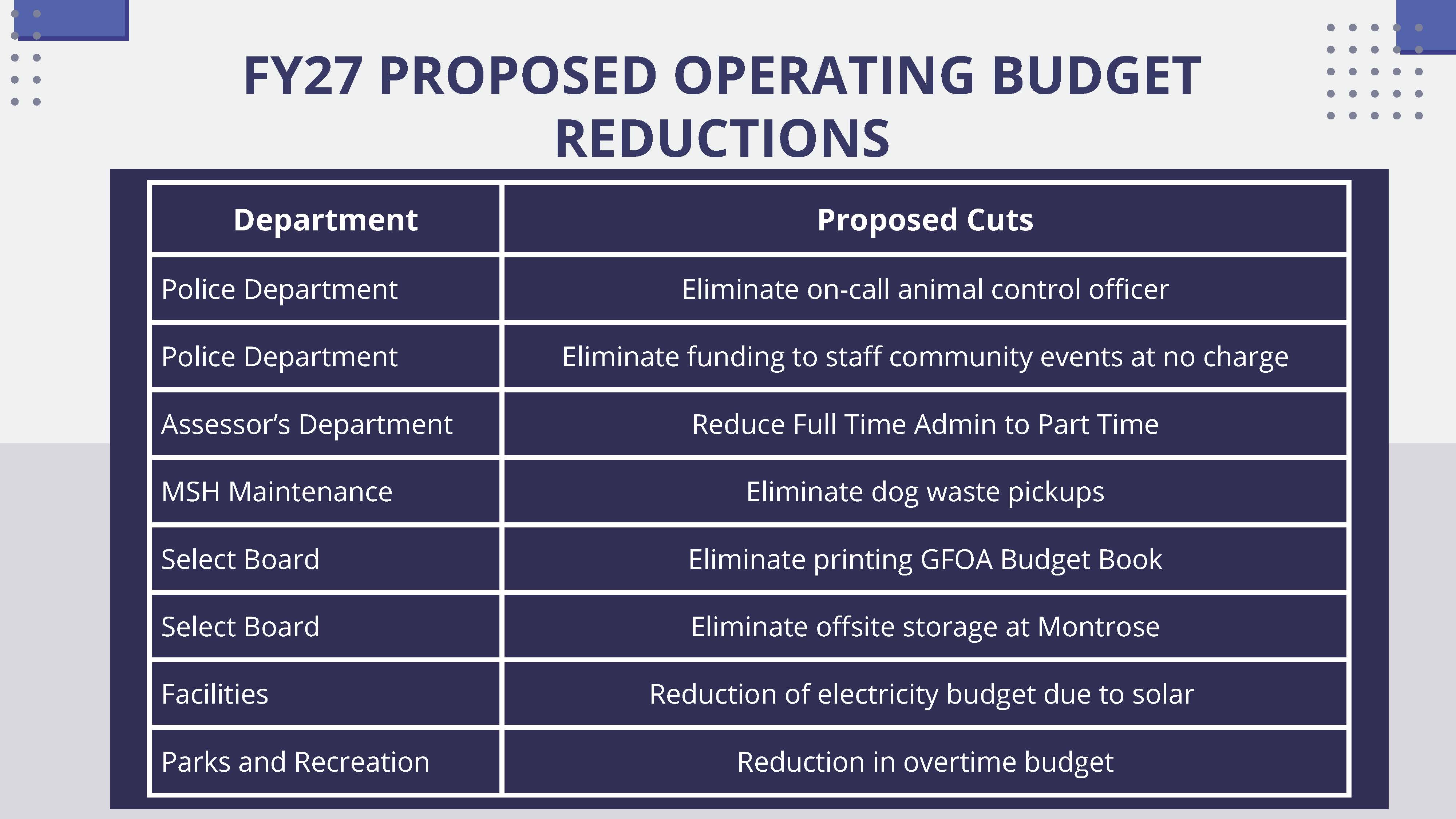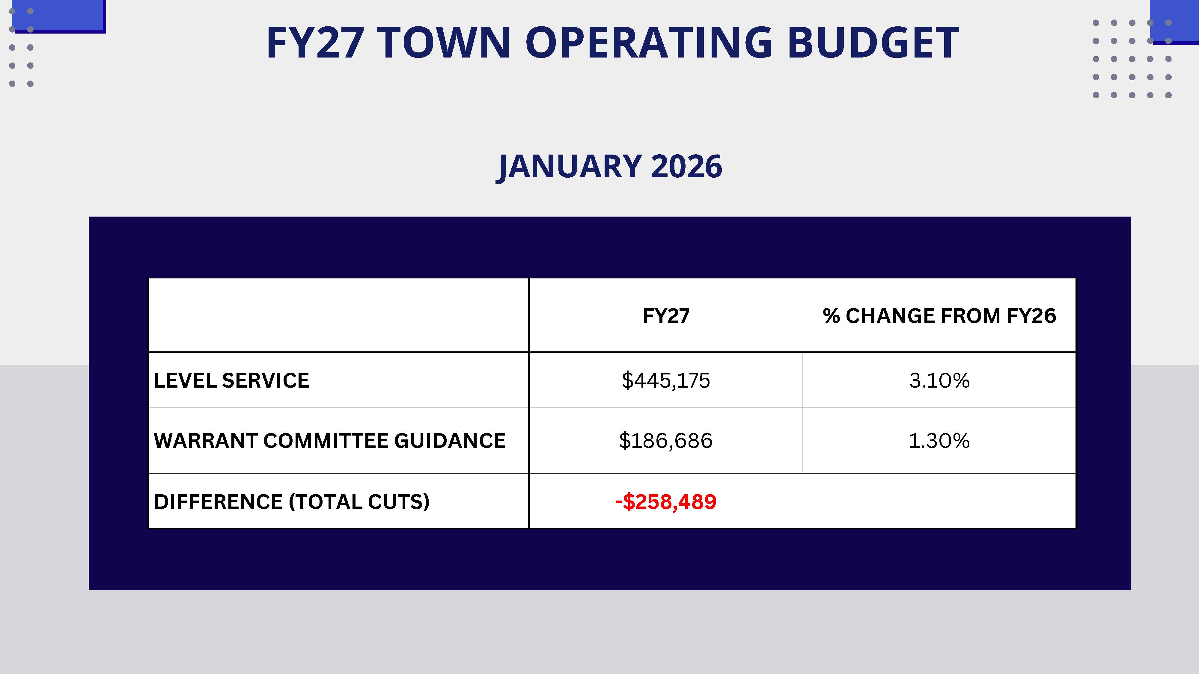 From Town Administrator, Kristine Trierweiler this morning, her FY27 PROPOSED OPERATING BUDGET