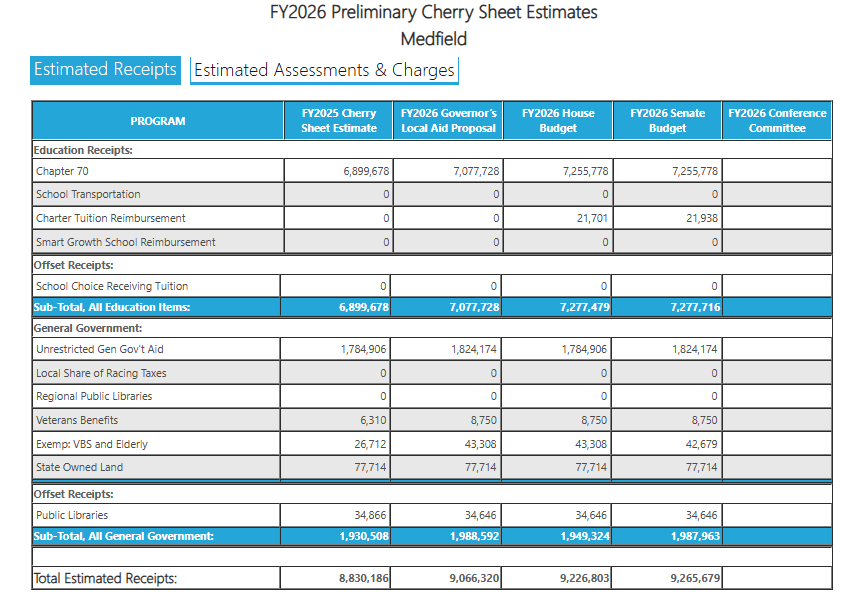 State aid – Unrestricted General Government Aid, or UGGA – to Medfield has declined for decades, and today is at less than half the level of our real estate property tax revenue that it was in 2007. The declining state aid has increasingly moved municipal services from being funded by the state income tax to the local property tax.