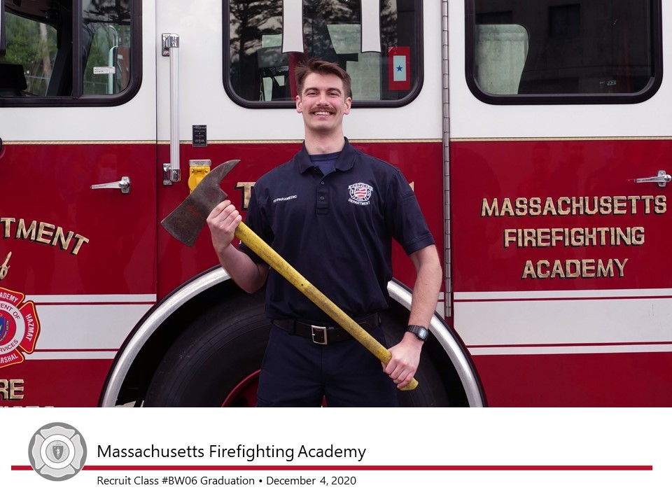 On Friday Dec 4th, Matt completed the 10 week Massachusetts Firefighting Academy Recruit Class #BW06 which was held in Bridgewater. He was also awarded the Richard N. Bangs Award for outstanding student.