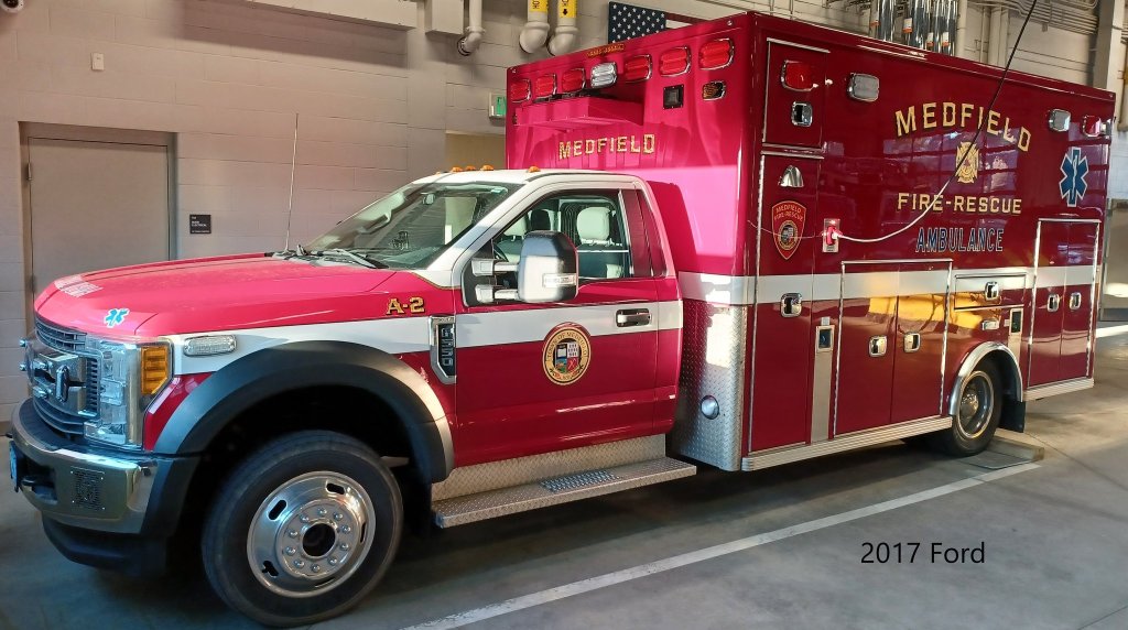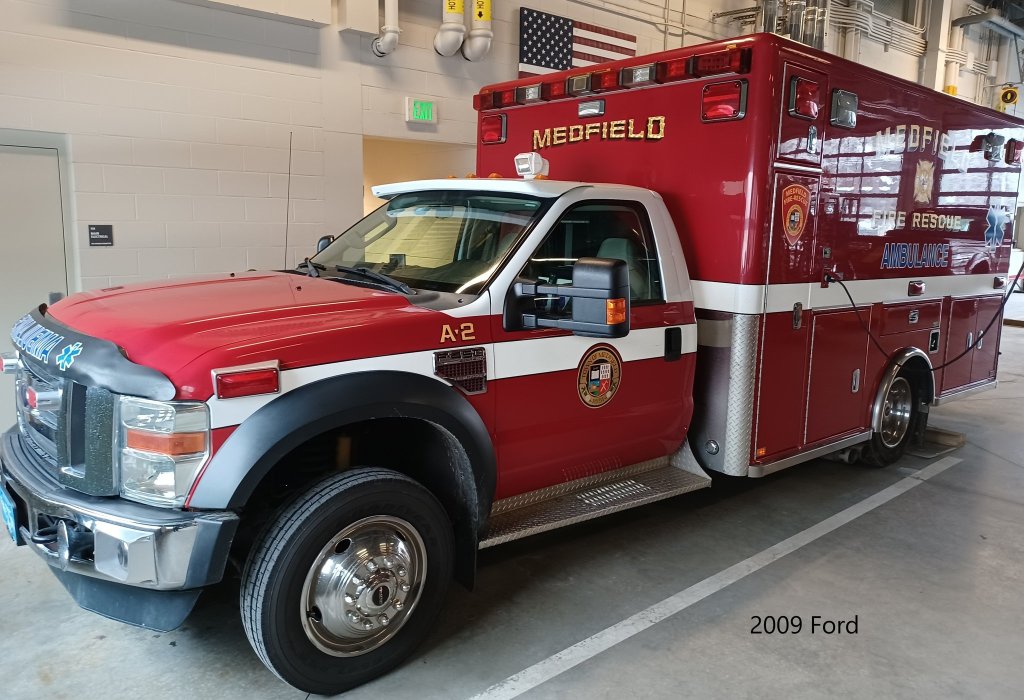 New Ambulance 1 (A1) is now in service. Our existing A1 (2017 model) has been relabeled as A2 and will be used as a backup. The 2009 ambulance previously serving as A2 has been retired. Thank you to the residents of @TownofMedfield for your support.