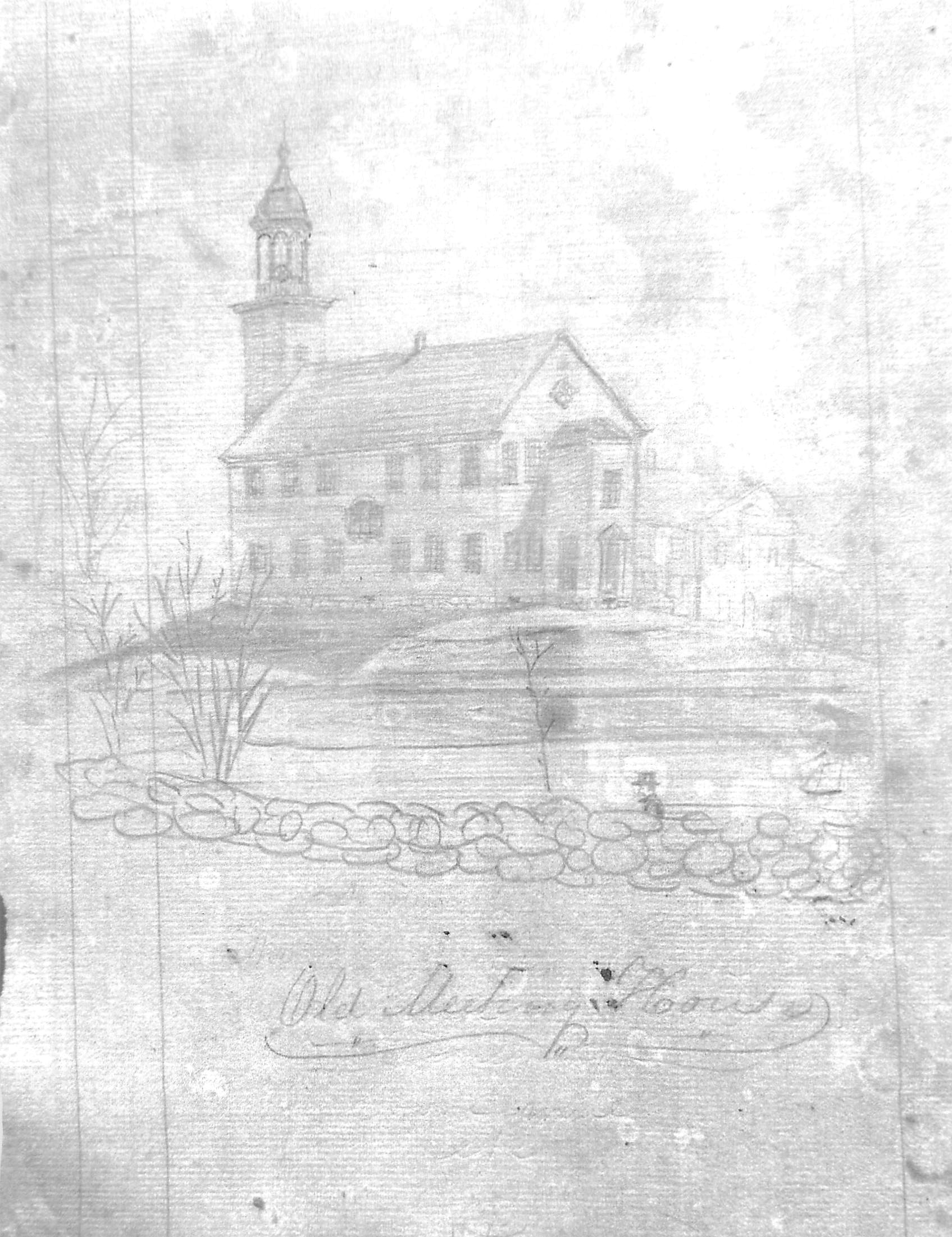 NB, by OLP: I just noticed a couple of more differences in the sketch from the current existing First Parish Meeting House: