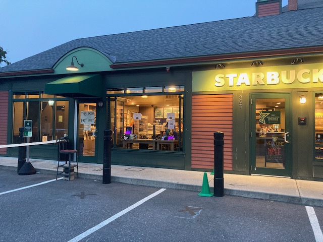 Starbucks has 2 jars with purple lights by their cash register by the main door