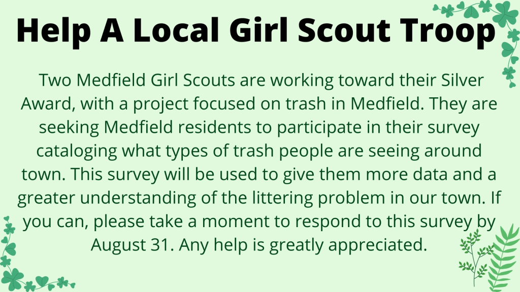 You should subscribe today to get your own copy of the TSARC newsletters – MedfieldTSARC@gmail.com. Your copy will look much prettier than my copied and pasted version.