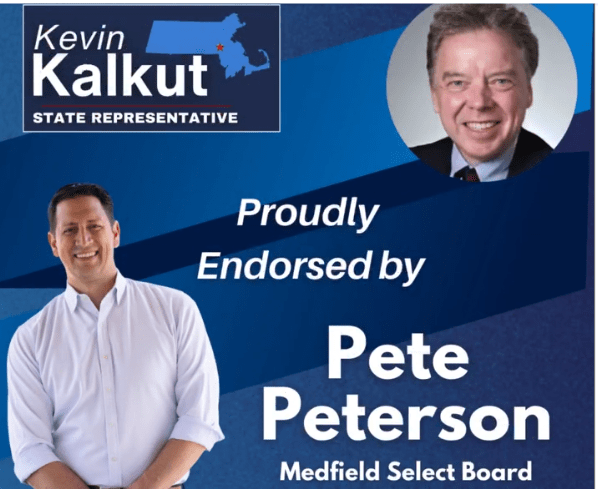 Having met with Kevin several times over the last two years, I’ve found him to be well aware of our municipal issues, knowledgeable about the roadblocks we face to address them, and insightful in his rationale for tangible solutions. His experience as a Select Board Chair in Norfolk as well as his body of work on the Planning Board, County Advisory Board, and MBTA Advisory Board all contribute to his locally-focused approach to public service. Most importantly, I have come to understand that Kevin truly cares about making our towns work better for our residents. He’s approachable, he listens, and makes himself available whenever asked. Based on all this, I am confident that he would represent Medfield’s interests well in the legislature and I hope you will join me in supporting Kevin Kalkut for 9th Norfolk State Representative. – Osler Peterson, Medfield Select Board