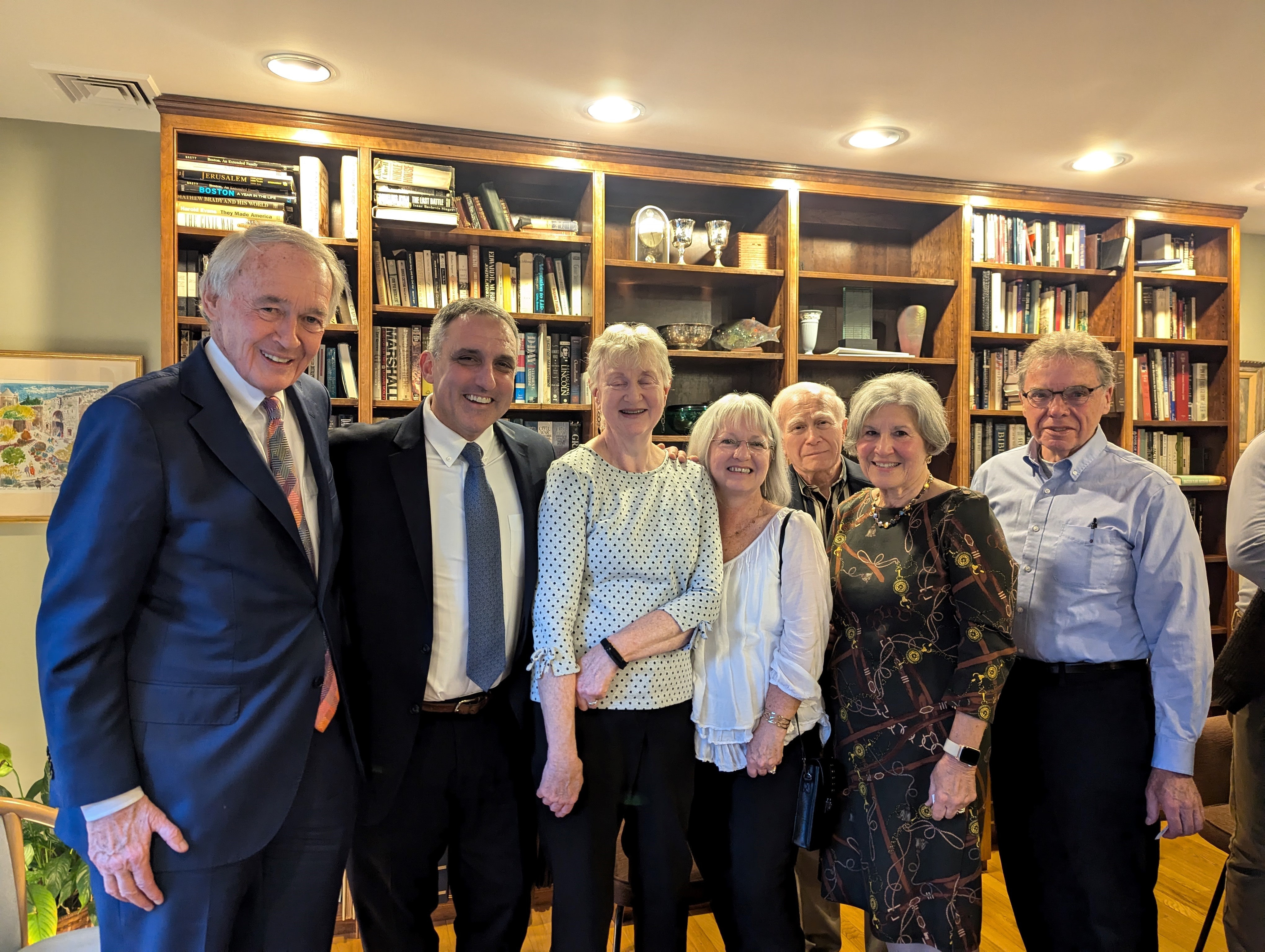 L-R: Sen. Edward Markey, Josh Tarsky, and Medfield residents Susan Bernstein, Sioban Donovan, Nino LaFrancesca, Joanne LaFrancesca, and Osler Peterson.
